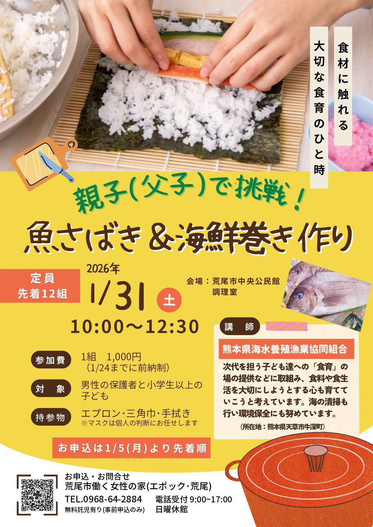 「親子(父子)で挑戦!魚さばき&海鮮巻き作り」